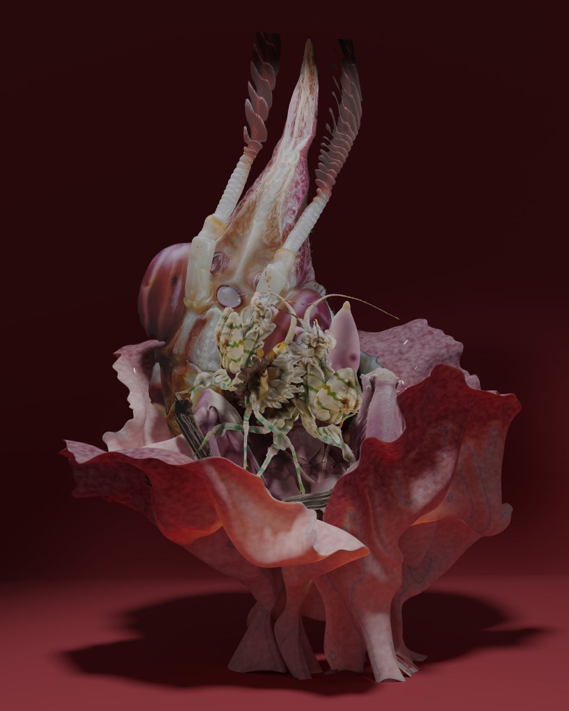 “Imaginary gardens with real toads in them” is a 3D/photography series based on Marianne Moore’s poems and her stance on the relationship between human (the reader) and non-human (the subject/poem) . Fleeing encounters, incompletely grasped situations or deceptive titles – like in “The Octopus”, in their poetry there is a sense of keeping things alive by a refusal of dominance. They do not want to master the animals she/they writes about and she does not want the reader to know them fully – because total knowledge also involves mastery.