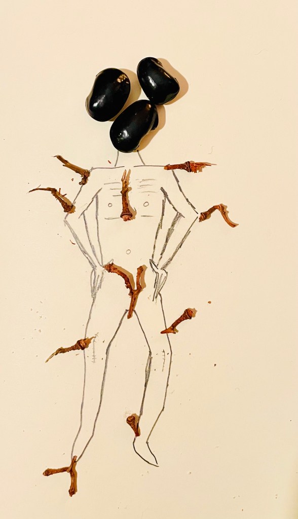 A medium of grape stems, garden beans, lunaria seed pods, and feathers, this project turns the body inside-out, a discourse between paper shadows and an anatomy that is both fluid and scarred.