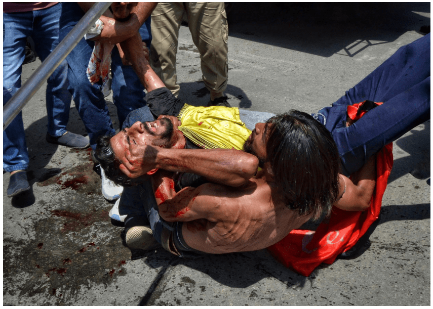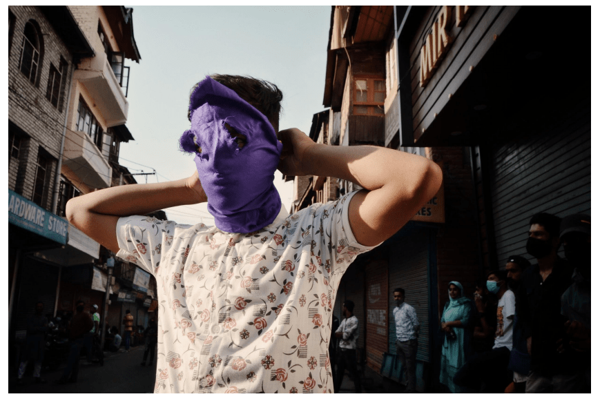 The photo captures a heartbreaking scene of police brutality in Lal Chowk, Srinagar, where two young boys are being detained by the police. The photo raises broader questions about the nature of policing in Kashmir and the need to uphold basic human rights. Yet, despite the brutality depicted, the enduring bond between the two young men imbues the photo with a sense of hope and resilience, reminding us of the importance of human connection in times of adversity.