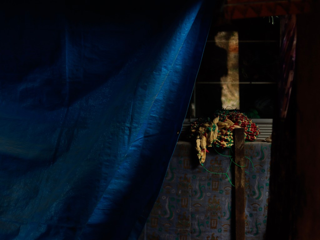 The ‘Bali Aga’ tribe in Indonesia were one of the first indigenous settlers in the archipelago, with lineage directly tracing back to the Gupta Kingdom in South India. Their conservative village comprises only 600-700 people, each of whom believes they are 6-7th generation reincarnates and can vividly recall their past lives. The community is fiercely protective of its own, and despite pressures to integrate with other Balinese indigenous tribes to aid their dwindling tribe, the village is still ‘closed’ – with inter-village marriages permitted only in very extreme cases. ‘Double Ikat’ is a complicated practice of tie-dye-weaving going back centuries, and trading Double ikat textiles forms the backbone of the Bali Aga commerce. This practice of ‘Double Ikat’ is directly linked to, and has influenced tie-dye-weaving in the trading port of Gujarat, India. While exploring the village, an ikat weaver warmed up to my curiosity and keenly invited me to her house for a meal. After sharing stories of her community, she gladly offered herself as a subject to be photographed. Seen here is Mba Ira – one of the oldest ‘Double ikat’ weavers alive in the community today. I was inspired by Lol Crawley’s signature use of chiaroscuro to try and hauntingly draw out her character while spotlighting her heirloom practice, as I composed this low-light photograph.