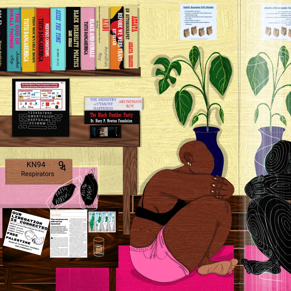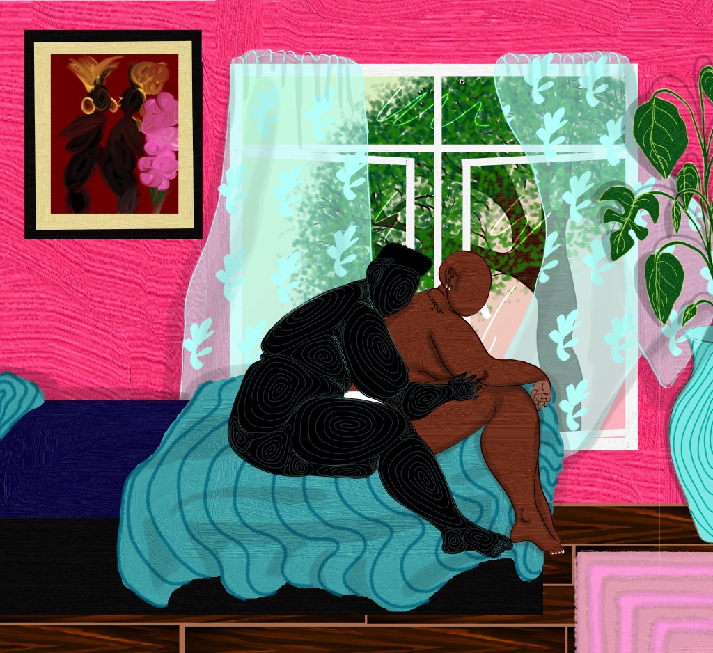 Mercy Thokozane Minah (b. 1992) is a gender-expansive, queer multidisciplinary maker who was born in Johannesburg, South Africa. They create work that centres the experiences of Black trans-queer (transgender and queer) people. Their favourite theme to explore is intimacy. Mercy creates across visual, theatrical, and literary mediums. They are a law-school dropout and recipient of the Taubie Kushlick prize for Drama, received in lieu of their degree in Theatre and Performance. They are also a published author of several short stories appearing in international queer anthologies such as the Lambda award-winning Queer Africa: new and collected fiction and bklyn boihood’s Outside the XY: Queer Black and Brown Masculinity. Mercy’s visual artwork has been displayed in virtual and physical – group and solo – exhibitions on Superrare (as part of the Black*rare group show), Quantum Art (with a sold-out solo auction titled Press Play), in Johannesburg (with Bkhz’s if not now, then when?), Cape Town (as part of Fede Arthouse’s Fullhouse), Paris (in the NFT Factory’s Indigo showcase), London (at 1-54 London’s contemporary African Art fair, represented in Bkhz’s Intimate), and Maputo (in a solo show at the French-Mozambiquen Cultural Centre, ‘a burst of light’). Their work has also been featured in three volumes of activist anthologies for the Gay and Lesbian archives (GALA, published via Taboom Media) and Ruth de Cerff’s Dwelling: a collection of South African fine art and literature, on the concept of “home”; along with appearing in – and on the cover – of the 4th issue of the Massachusetts Review in 2023. For Mercy art is a crucial tool for possibility modelling; that is, crafting realities in which the oppressions of the current world no longer exist, and Black trans-queer people are radically safe and free. Mercy is interested in how personal, interpersonal, and societal notions of self-determination, connection and solidarity can help actualize widespread liberation.